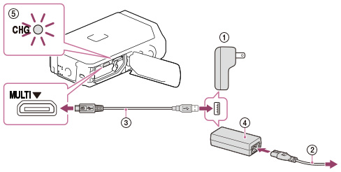 Η λυχνία CHG (φόρτισης) σβήνει όταν η μπαταρία είναι πλήρως φορτισμένη. Αποσυνδέστε το καλώδιο USB από τον ακροδέκτη Multi/Micro USB της βιντεοκάμεράς σας.