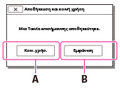 A: Εάν επιλέξετε [Κοιν. χρήσ.] μπορείτε να ανεβάσετε την ταινία επισήμανσης στο διαδίκτυο χρησιμοποιώντας το λογισμικό "PlayMemories Home". [Πληροφ.]