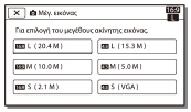 Μπορείτε να επιλέξετε ένα μέγεθος για τις φωτογραφίες που θα τραβήξετε.