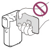 Κατά τη διάρκεια της λειτουργίας, μην τυλίγετε τη βιντεοκάμερα, για παράδειγμα, με πετσέτα. Με αυτό τον τρόπο, ενδέχεται να προκληθεί σταδιακή αύξηση της θερμοκρασίας στο εσωτερικό της.
