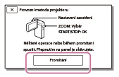 Tato obrazovka se otevře při prvním použití vestavěného projektoru po zapnutí videokamery.