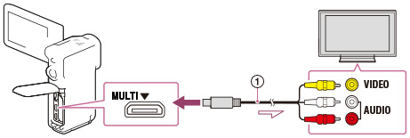 Ak je kamkordér pripojený k televízoru pomocou AV kábla, nemôžete používať sieťový adaptér striedavého prúdu, ktorý je súčasťou dodávky, ako zdroj napájania. Pred pripojením nabite batériu. [Detaily]