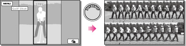 Ak sa kamkordéru nepodarí správne rozpoznať okamih úderu v dôsledku pohybu na pozadí obrazovky nahrávania funkcie [Golf Shot], môže sa zvýšiť šum zaznamenaného záberu. Odporúčame vám, aby ste zábery nahrávali v stabilizovanej polohe (napríklad tak, že použijete statív).