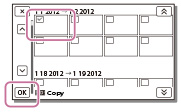 Môžete kopírovať všetky zábery z vybratého dátumu naraz. Vyberte typ záberov, ktoré chcete kopírovať a vyberte dátum, ktorý chcete kopírovať, pomocou tlačidiel
