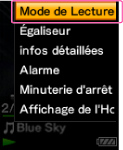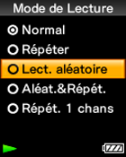 Par exemple, la procédure de réglage de l’option [Mode de Lecture] sur [Lect. aléatoire] est illustrée ci-dessous.