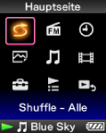 Alle Songs werden gemischt. Danach wird der Musikwiedergabebildschirm angezeigt und die Wiedergabe der Songs startet.