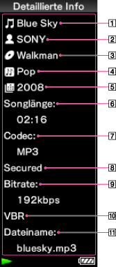 Anzeigen detaillierter Informationen zu einem Song, wie z. B. Wiedergabedauer, Audioformat, Bitrate und Dateiname [Details].