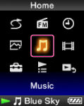 Meniul principal este punctul de pornire al fiecărei aplicaţii, precum căutarea pieselor muzicale, modificarea setărilor etc.