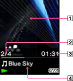Zonă de informare (pictograme de stare, denumire piesă muzicală/nume artist (*2) etc.)