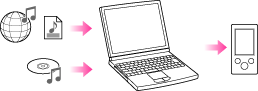 Не оставяйте вашия Walkman свързан за продължително време към лаптоп, който не е свързан към електрическата мрежа, защото вашият Walkman може да изтощи батерията на компютъра.