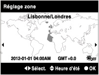 de la molette de commande ou tournez la molette de commande pour sélectionner la zone souhaitée, puis sélectionnez l’Heure d’été à l’aide de