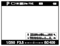 Показывает основную информацию о съемке. Графически показывает значение скорости затвора и диафрагмы.
