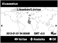 Säätää ajan valitun alueen paikalliseen aikaan.