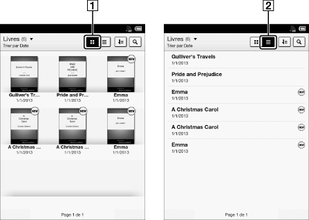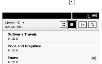 affiche une liste de contenu.* Certaines applications ne permettent qu’un seul affichage de liste.