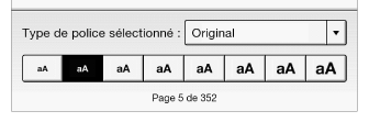 Lorsque vous ne sélectionnez pas la police [Original], les performances risquent d’être légèrement inférieures lorsque vous ouvrez des livres ou tournez les pages.