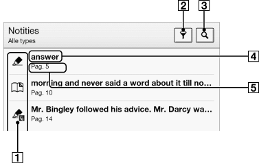 Gebruik de [Alle notities]-applicatie om alle annotaties in alle boeken en periodieken te zoeken, te sorteren en weer te geven. Raadpleeg Details.