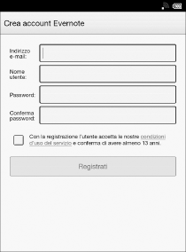 Se non è stato ancora creato un account Evernote, è necessario provvedere per poter utilizzare l’applicazione.