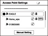 Before starting the procedure, check the SSID name of the access point, security system, and password. The password may be preset in some devices. For details, see the instruction manual of the wireless access point, or consult the network administrator.