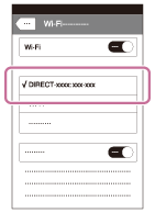 iPhoneまたはiPadのWi-Fi設定画面で本機(DIRECT-xxxx:xxxx)を選ぶ。