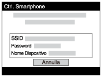 (Senza fili) → [Ctrl. Smartphone]. - Quando il prodotto è pronto per la connessione, sul prodotto appare una schermata di informazioni. Collegare lo Smartphone e il prodotto usando quelle informazioni.