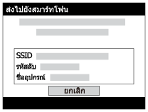 - ผลิตภัณฑ์นี้แบ่งปันข้อมูลการเชื่อมต่อสำหรับ [ส่งไปยังสมาร์ทโฟน] กับอุปกรณ์ที่ได้รับอนุญาตให้เชื่อมต่อ ถ้าต้องการเปลี่ยนอุปกรณ์ที่ได้รับอนุญาตให้เชื่อมต่อกับผลิตภัณฑ์ ให้รีเซ็ตข้อมูลการเชื่อมต่อโดยปฏิบัติตามขั้นตอนต่อไปนี้ MENU → [ไร้สาย] → [รีเซ็ต SSID/รหัสลับ]. หลังจากรีเซ็ตข้อมูลการเชื่อมต่อแล้ว ท่านต้องลงทะเบียนสมาร์ทโฟนอีกครั้ง