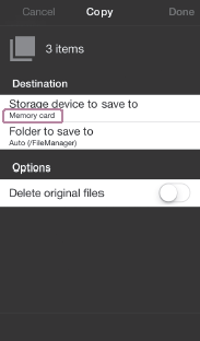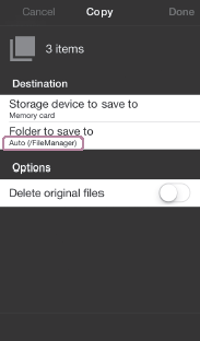 iOS: [Bitti] öğesine dokunun.Dosya/Klasör kopyalama işlemi başlar.