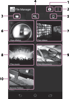 (*) (Menü) simgesiBu birimin [Ayarlar] menüsünü, File Manager hakkında bilgileri ve [Yardım] menüsünü göstermek için buna dokunun.