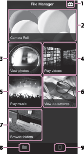 (Menü) simgesiBu birimin [Ayarlar] menüsünü, File Manager hakkında bilgileri ve [Yardım] menüsünü göstermek için buna dokunun.