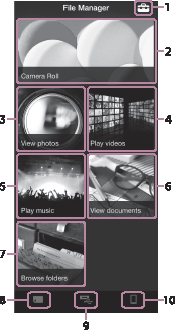 (Menü) simgesiBu birimin [Ayarlar] menüsünü, File Manager hakkında bilgileri ve [Yardım] menüsünü göstermek için buna dokunun.