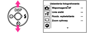 • [Ustawienia fotografowania] pojawi się tylko, gdy nastawienia zostały wprowadzone z trybu nagrywania.