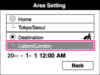 Zvoľte časť oblasti pre [Destination] a potom stlačte