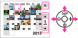 Για να προβάλλετε εικόνες με την επιλεγμένη ημερομηνία στη λειτουργία ευρετηρίου, επιλέξτε την ημερομηνία με το κουμπί ελέγχου και πατήστε