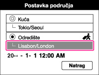 Fotoaparat koristite podešen na vrijeme odredišta. Podesite odredišno područje.