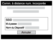 (Application) → [Liste d'applications] → [Comm. à distance num. incorporée]. - Lorsque le produit est prêt pour la connexion, un écran d’information apparaît sur le produit. Connectez le smartphone et le produit en utilisant ces informations.