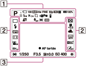 - Fájl sorszáma/Képek száma megtekintő üzemmódban