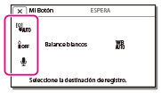 Las funciones que utiliza con mayor frecuencia al grabar se pueden asignar a uno de Mis botones.