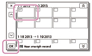 Als u [Op smartphone selecteren] selecteert, worden alle films die op de geheugenkaart zijn opgeslagen, weergegeven op de smartphone.