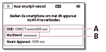 De SSID en het wachtwoord worden weergegeven en verbinding met de camcorder wordt mogelijk vanaf de smartphone of tablet.