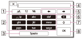 Ogni volta che viene premuto il tasto, il tipo di carattere da inserire viene alternato tra lettere, numeri e simboli.