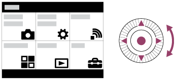 Selecione o item do MENU desejado usando o lado para cima/para baixo/esquerdo/direito do seletor de controlo ou rodando o seletor de controlo, e depois carregue em