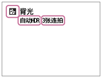 当相机识别场景时,会在画面上显示场景识别图标。如有需要,还会显示适合所识别场景的拍摄功能和释放快门的次数。