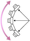 Panoramatický záber snímajte tak, aby fotoaparát opisoval oblúk konštantnou rýchlosťou smerom indikovaným na displeji.