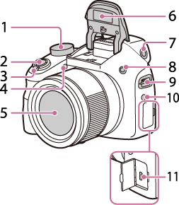 (Afspilningszoom)-knappen - Selvudløserlampe/AF-lampe