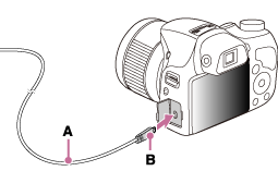 - Forbind kameraet med din computer ved at bruge det dedikerede USB-kabel (medfølger) (A).