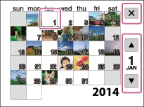 usando o botão de controle e, em seguida, o mês desejado. - Para visualizar as imagens na data selecionada no modo de índice, selecione a data usando o botão de controle e, em seguida, pressione