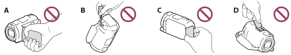 - 万一、ビデオカメラレコーダーや記録メディアなどの不具合により記録や再生がされなかった場合、画像や音声などの記録内容の補償については、ご容赦ください。