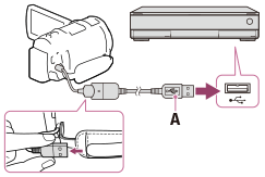 ]で撮影した動画を保存するには、AVCHD規格 Ver.2.0に対応した機器が必要です。また、作成したブルーレイディスクは、AVCHD規格 Ver.2.0に対応した機器でのみ再生できます。 - ブルーレイディスクレコーダーとの接続については、ホームページのサポート情報をご覧ください(http://www.sony.co.jp/cam/support/)。