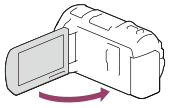 液晶モニターを開いて電源を入れる。