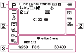 - หมายเลขไฟล์/จำนวนภาพในโหมดดูภาพ