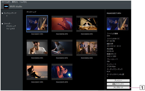 [アップロード]()をクリックする。